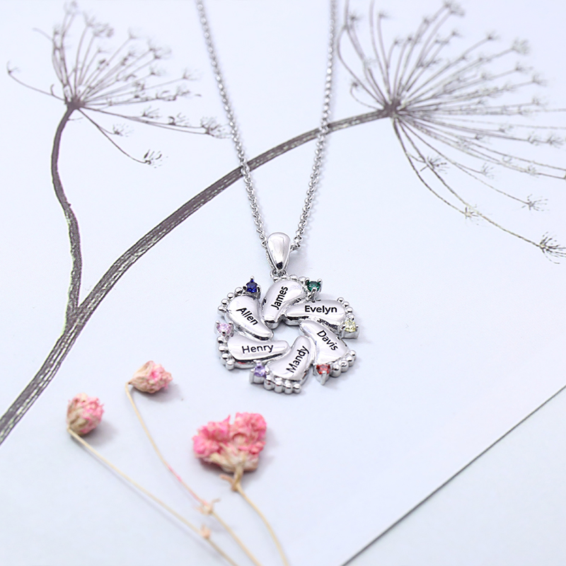 Custom foot necklace, family necklace