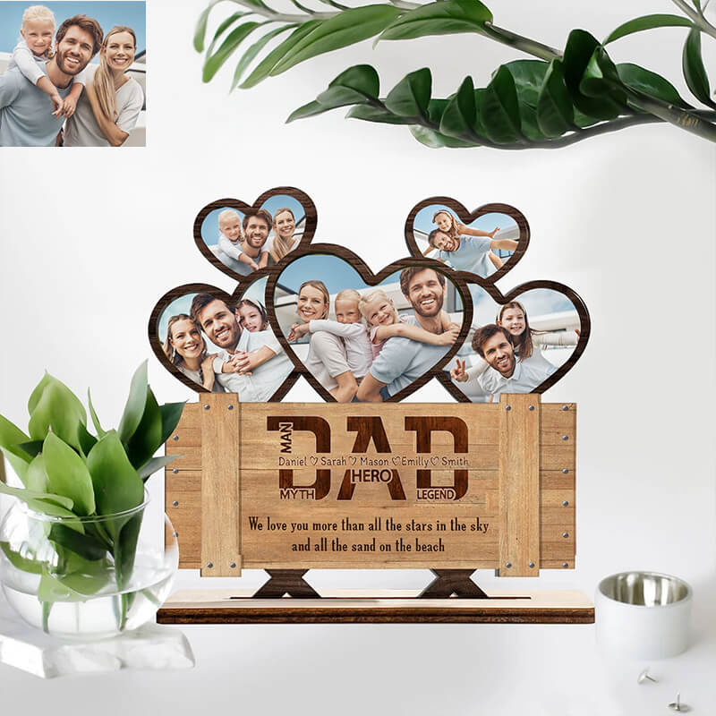 Personalized DAD heart-shaped photo and name wooden ornaments
